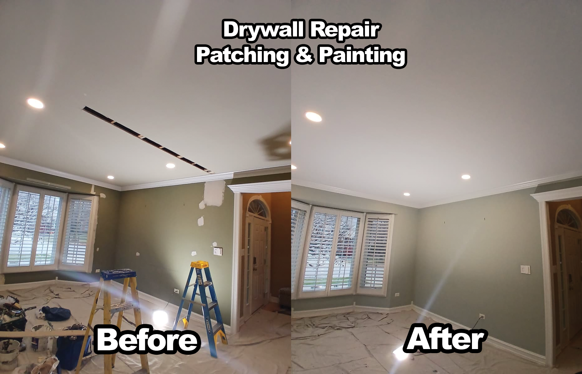 Drywall Repair – Seamless repairs and polished walls, expertly matching drywall texture to existing surfaces.